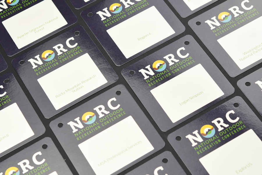 Level up your event's sustainability profile with our eco-friendly badges. We print these on heavy-duty 100% recycled cardstock, available in bright white or natural brown Kraft. The white recycled stock features subtle visible fibers, giving it a high-end, organic character.