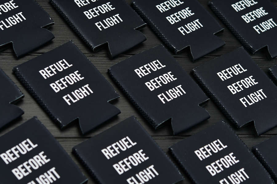 Available in two materials, our coolers are made from either polyurethane foam or high-quality Neoprene, known for its wetsuit-like properties. They're designed to fit standard 12oz cans or bottles comfortably, ensuring your drink stays cool while keeping your hands dry by preventing condensation.