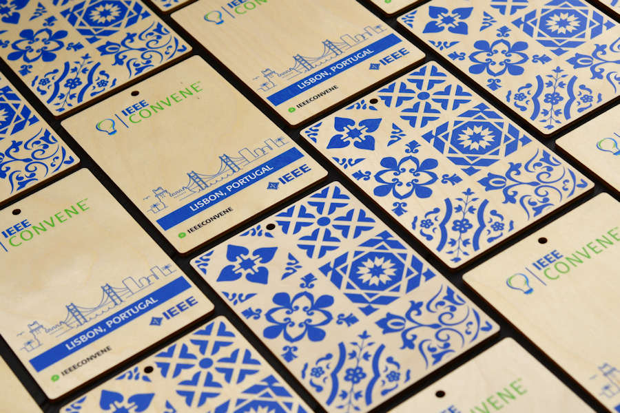 Personalized conference badges from birch plywood